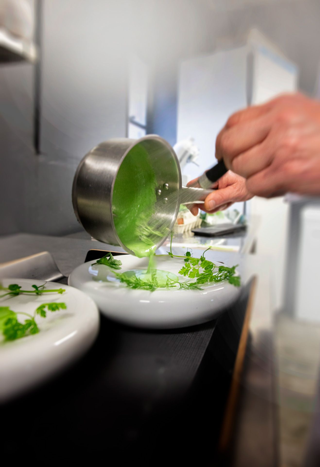 Franck Gatefin est un dénicheur permanent de producteurs et d’éleveurs de talents situés à proximité de ses cuisines. Sitôt cueillis, sitôt valorisés dans l’assiette, prêts à être servis avec justesse par Séverine en salle.